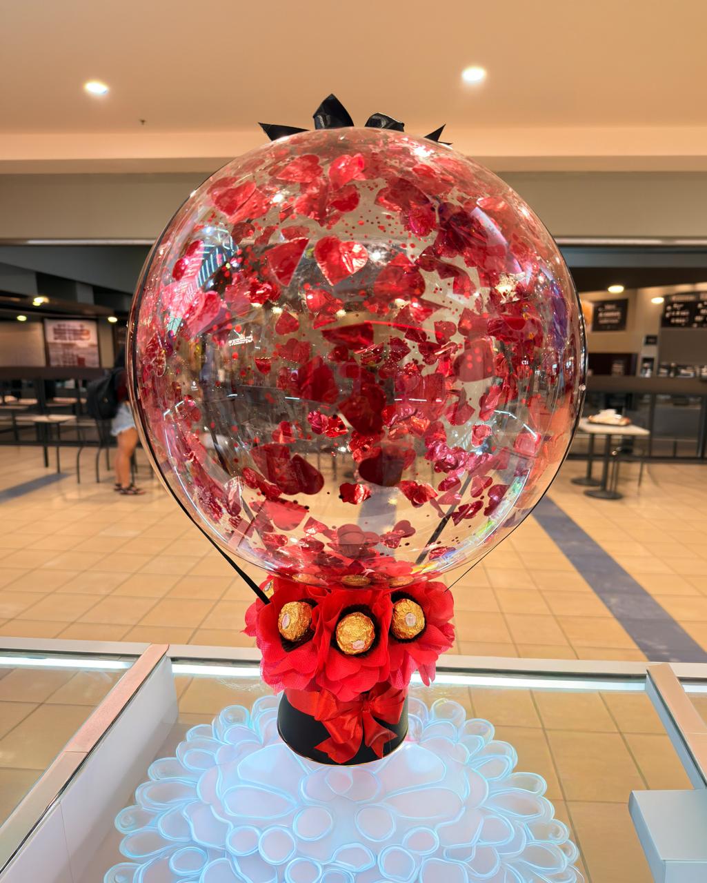 - En el interior tiene globitos pequeños + confetti en forma de corazon